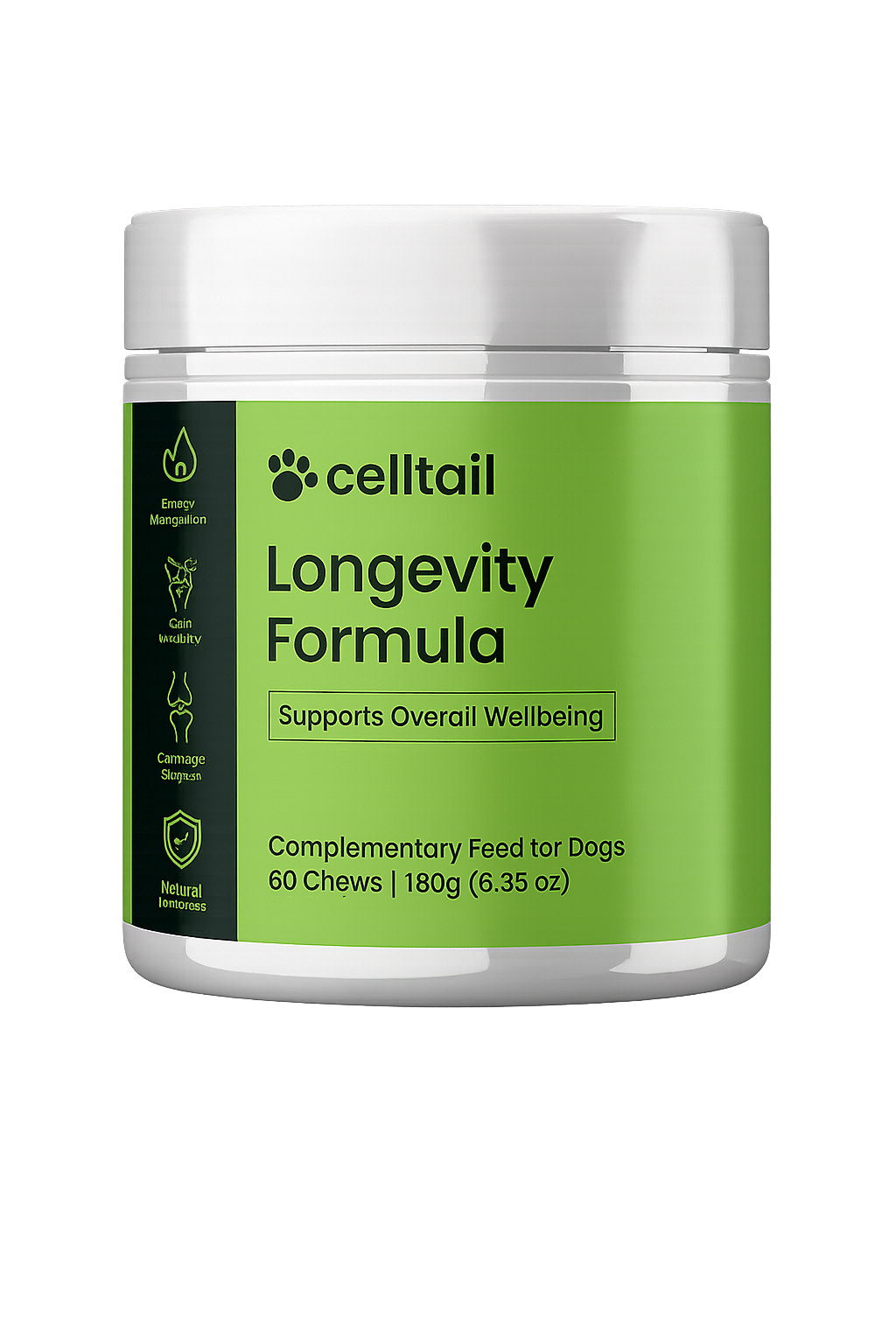 Give your dog complete daily support with Celltail "Longevity Formula", a premium complementary feed designed to promote mobility, vitality, digestive balance, and overall wellbeing. This soft-chew supplement combines clinically explored ingredients with high-quality nutritional components to support healthy ageing and everyday comfort in dogs of all breeds and sizes.